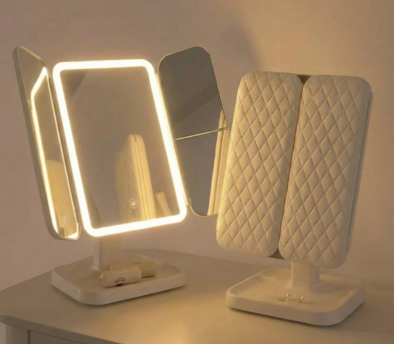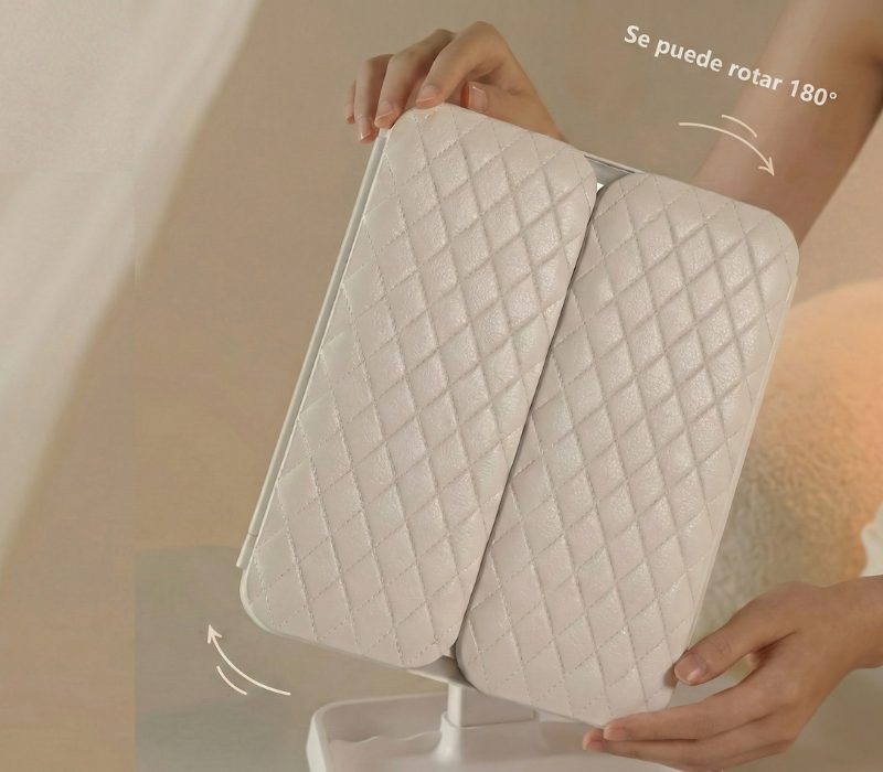 Sí, es ideal para viajar. Gracias a su diseño de triple panel plegable, se cierra como un libro para proteger los cristales y ahorrar espacio en tu maleta. Además, al ser ligero y recargable, es tu compañero de belleza perfecto fuera de casa.