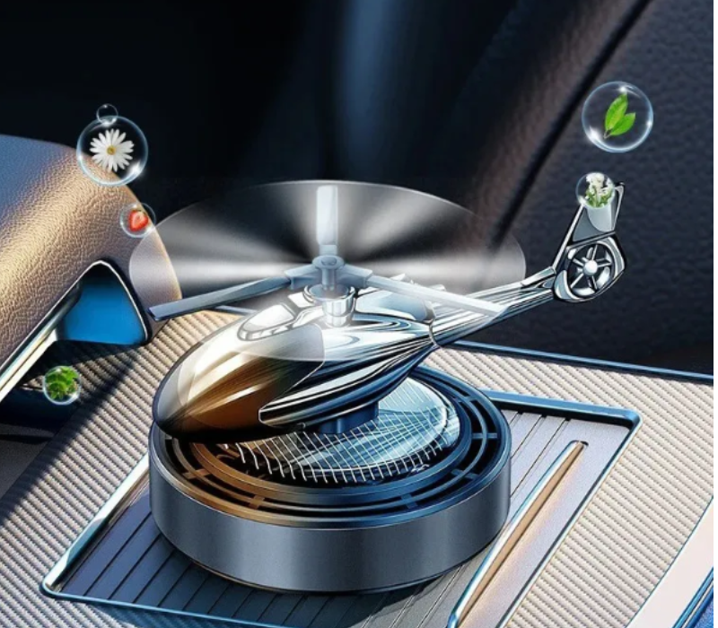 Llena el compartimiento de la base del helicóptero con tu fragancia líquida favorita. Las aspas giratorias dispersaran el aroma por todo el coche.