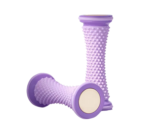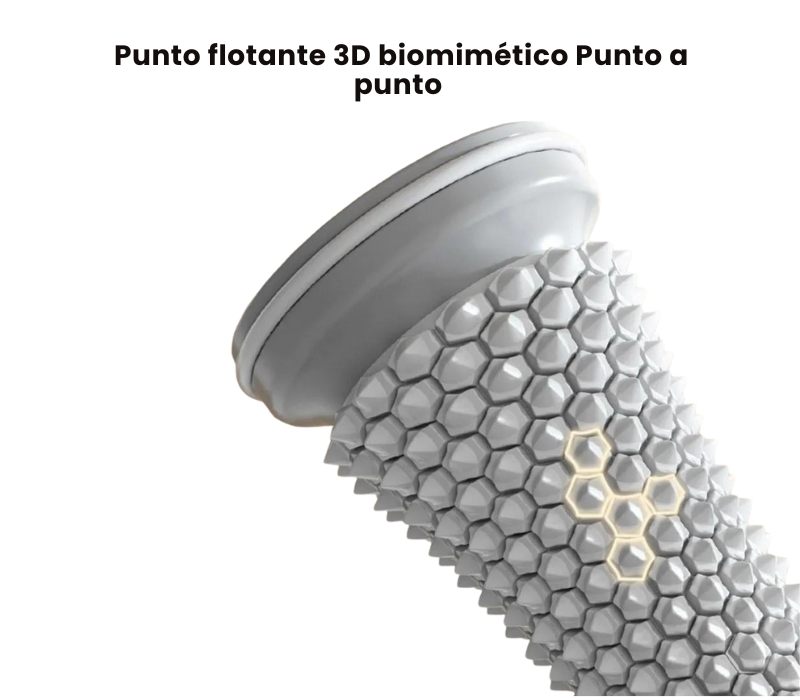Es una herramienta diseñada específicamente para masajear y aliviar la tensión en la fascia plantar (el tejido conectivo en la planta del pie). Sus puntos de presión texturizados permiten un masaje de tejido profundo, ayudando a liberar nudos musculares, mejorar la circulación y reducir la inflamación, que son las causas principales del dolor de la fascitis plantar.